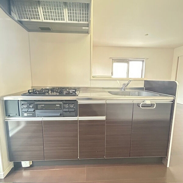 給湯器(プロパンガス)、3口ガスコンロ、システムキッチン