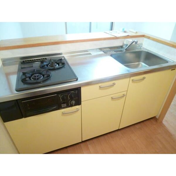 給湯器(都市ガス)、2口ガスコンロ、システムキッチン、カウンターキッチン