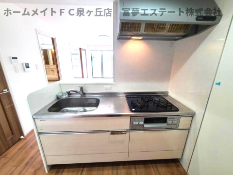 給湯器(都市ガス)、3口ガスコンロ、システムキッチン