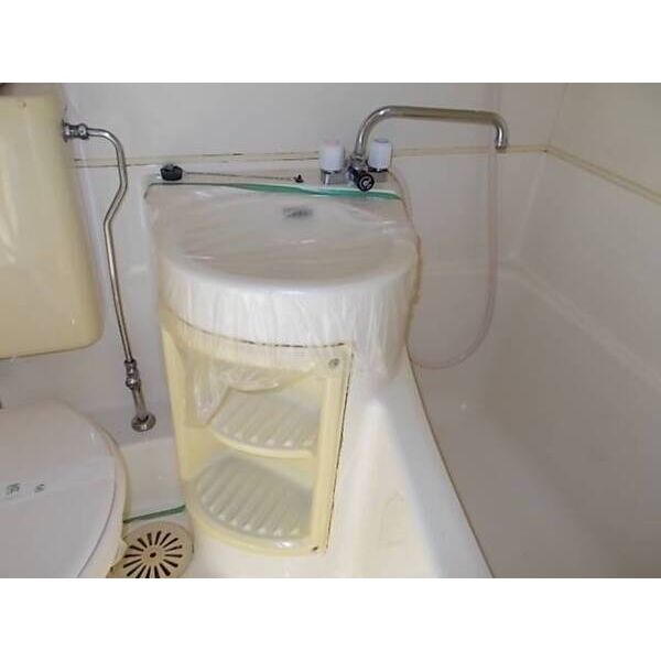 ユニットバス、洗面台(浴室内)、洗濯機置場(屋外)