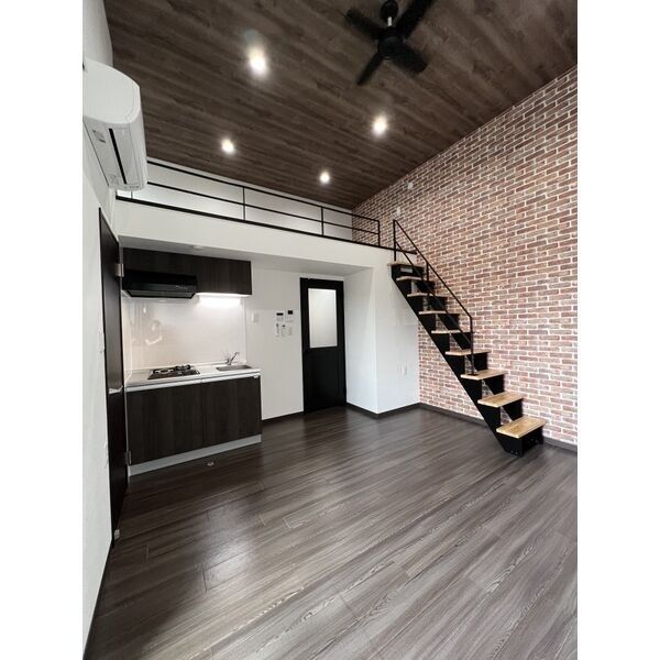エアコン、バス・トイレ別、シューズボックス、クローゼット、ロフト、給湯器(プロパンガス)、2口ガスコンロ、BS端子、インターネット使い放題、オートロック、TVモニタ付きインターホン