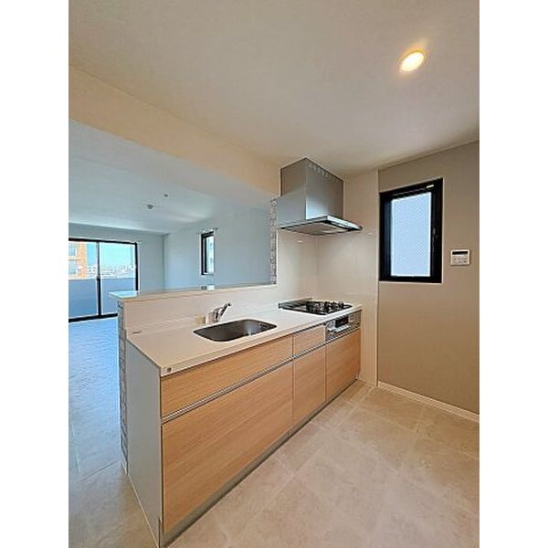 給湯器(都市ガス)、3口ガスコンロ、システムキッチン、カウンターキッチン