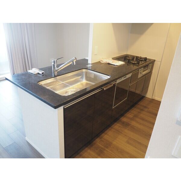 給湯器(都市ガス)、3口ガスコンロ、システムキッチン、カウンターキッチン、ディスポーザー、食器洗浄乾燥機