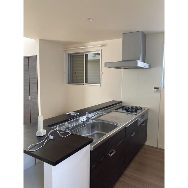システムキッチン、カウンターキッチン、給湯器(ガス)、3口ガスコンロ