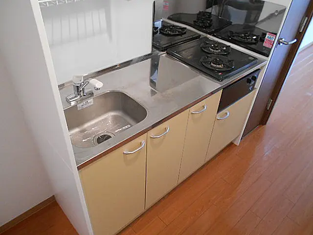 給湯器(都市ガス)、2口ガスコンロ、システムキッチン