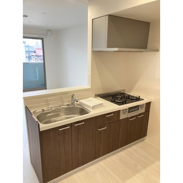 給湯器(都市ガス)、3口ガスコンロ、システムキッチン、カウンターキッチン