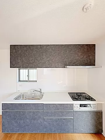 給湯器(プロパンガス)、3口ガスコンロ、システムキッチン