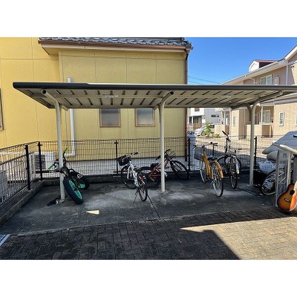 玄関にシューズボックス、お部屋にクローゼット、設備には駐輪場があります。