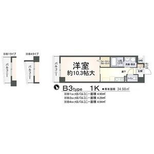 間取り: 1K~1K / 34.98m²~34.98m²