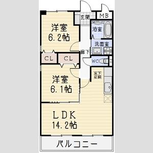 間取り/面積: 2LDK 58.95m²
