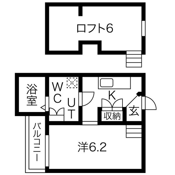 間取り/面積: 1K 19.55m²