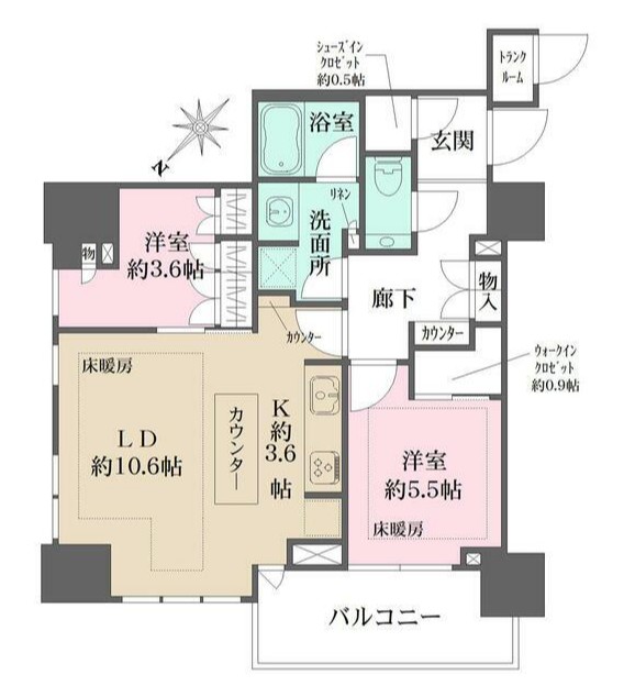 間取り: 2LDK~2LDK / 61.24m²~61.24m²
